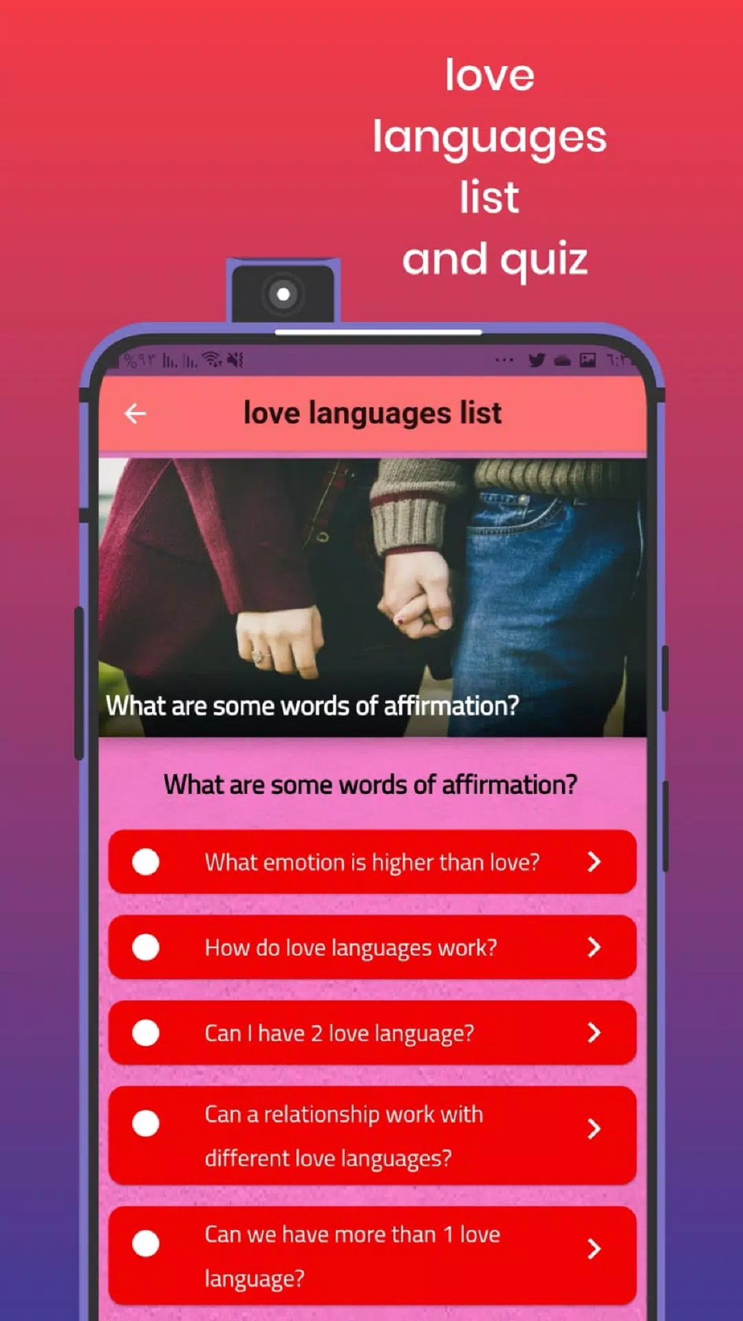. You can start the love language quiz right now but we suggest that you read Gary Chapmans theory - you will learn what love languages. People who have this love language usually really like receiving compliments hearing their partner say what they like about them and the words I love you and all its sweet. It helps you better.